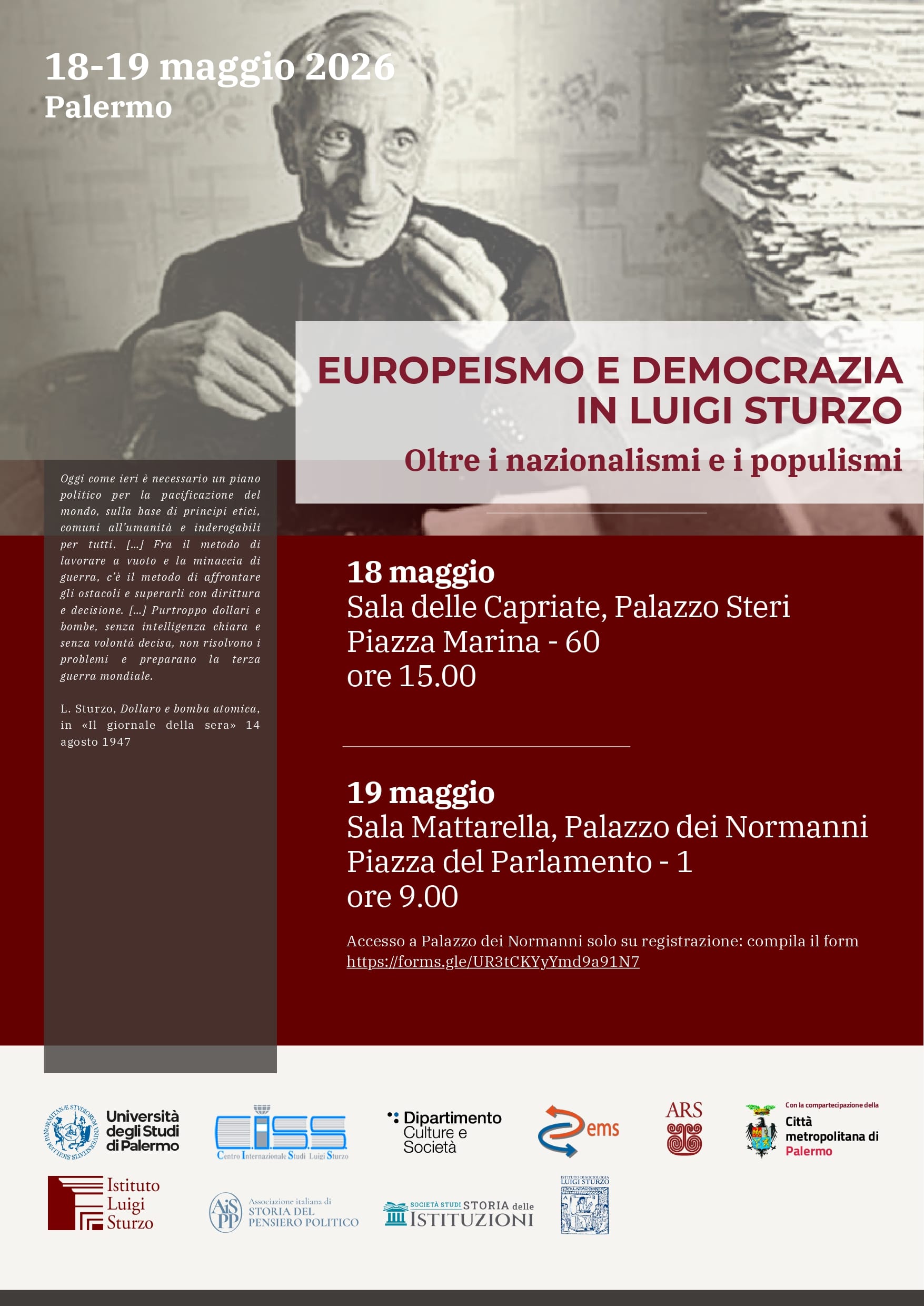 18 MAGGIO 2026 Sala delle Capriate, Palazzo Steri Ore 15.00 SALUTI ISTITUZIONALI • MASSIMO MIDIRI Magnifico Rettore dell’Università degli Studi di Palermo • VALENTINA FAVARÒ Direttrice del Dipartimento Culture e […]