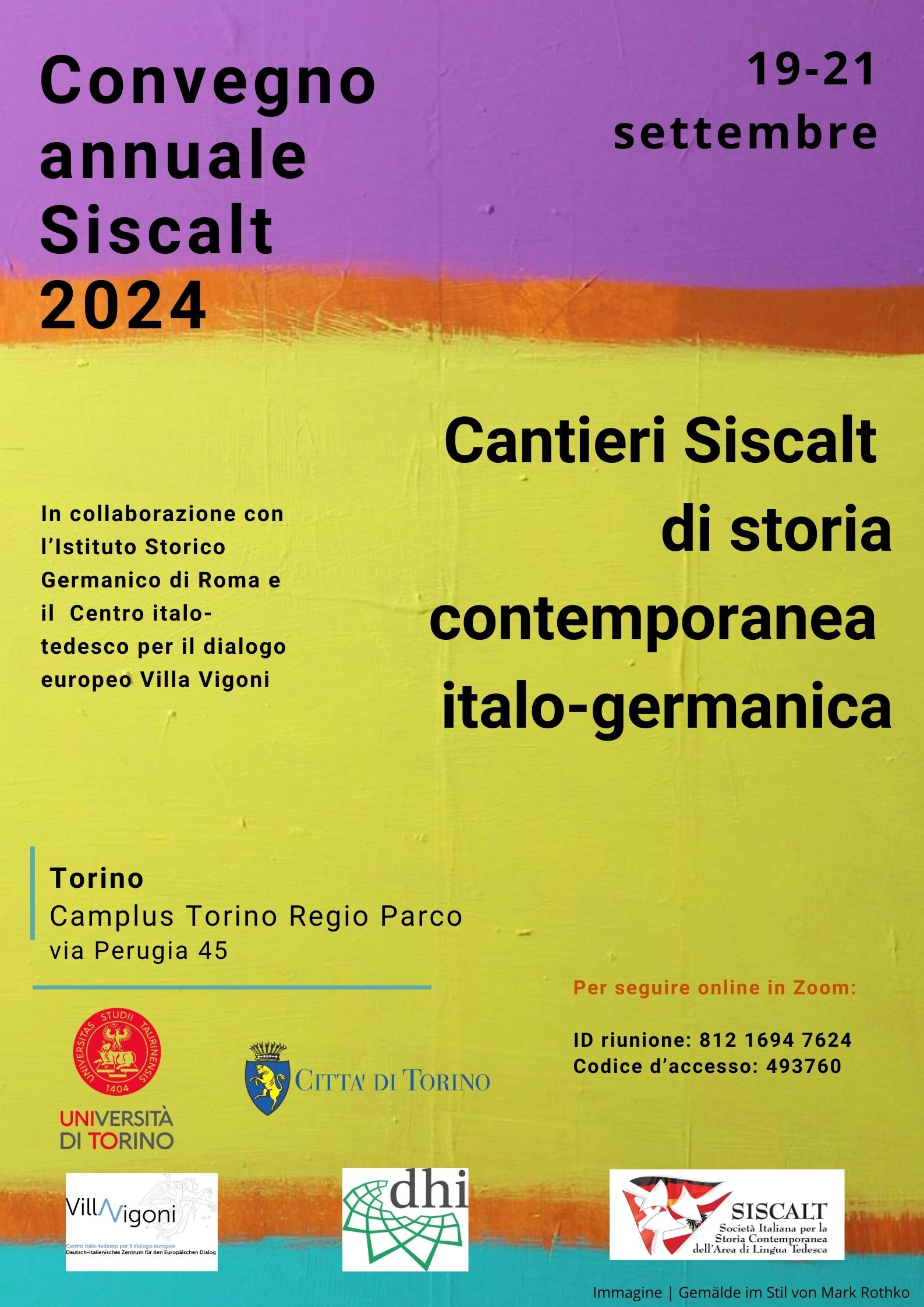 ![]() Convegno annuale Siscalt 2024, in collaborazione con l'Istituto Storico Germanico di Roma e il Centro italo-tedesco per il dialogo europeo Villa Vigoni. L'evento si terrà a Torino, presso il Camplus Torino Regio Parco, dal 19 al 21 Settembre. Per informazioni più dettagliate, scaricare la locandina completa in allegato. È possibile seguire i lavori anche a […] |
