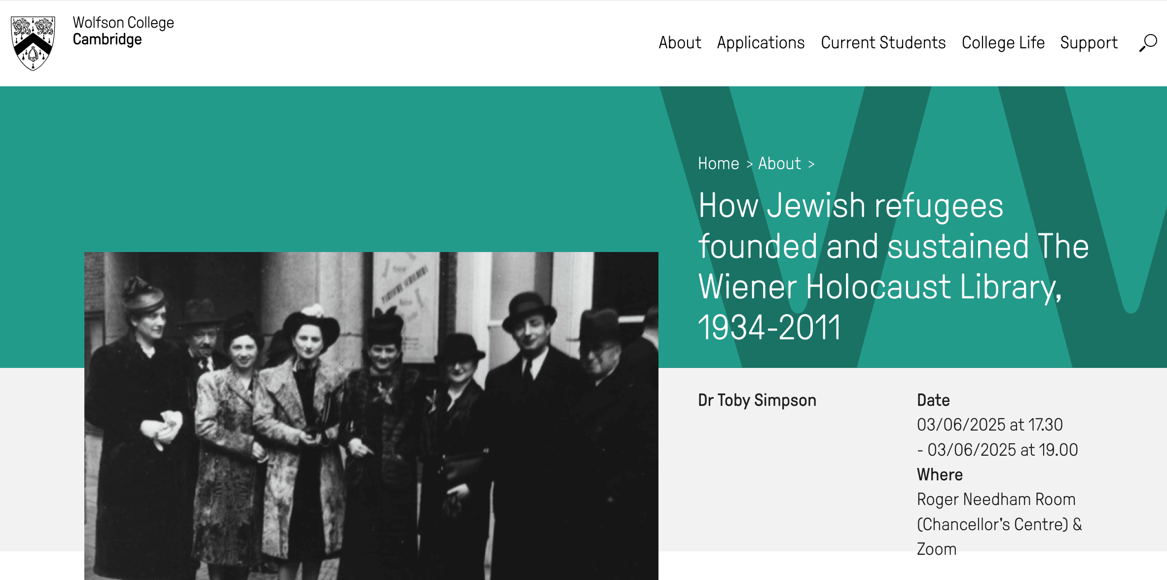 Martedì 3 giugno, ore 18:30 (5.30 pm GMT) Seminario della Humanities Society del Wolfson College, Università di Cambridge Dr Toby Simpson (Director, Wiener Library, London), 'How Jewish refugees founded and sustained The Wiener Holocaust Library, 1934-2011' Chair: Bianca Gaudenzi (Libera Università di Bolzano; Wolfson College, University of Cambridge) Per partecipare su zoom si prega di […]