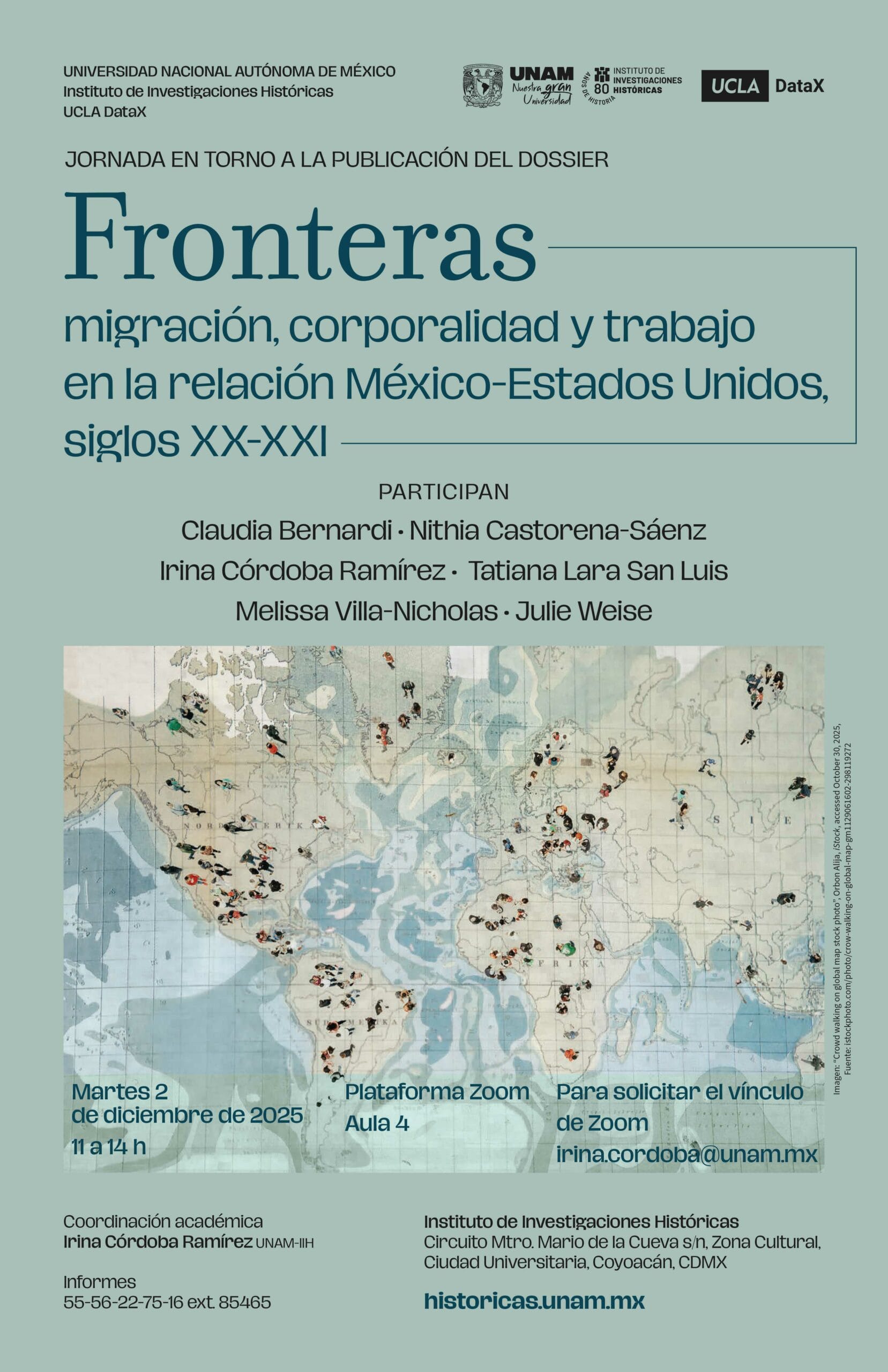 UNIVERSIDAD NACIONAL AUTÓNOMA DE MÉXICO Instituto de Investigaciones Históricas UCLA Data X JORNADA EN TORNO A LA PUBLICACIÓN DEL DOSSIER Fronteras. Migración, corporalidad y trabajo en la relación México-Estados Unidos, siglos XX–XXI PARTICIPAN Claudia Bernardi · Nithia Castorena-Sáenz Irina Córdoba Ramírez · Tatiana Lara San Luis Melissa Villa-Nicholas · Julie Weise Martes 2 de diciembre […]