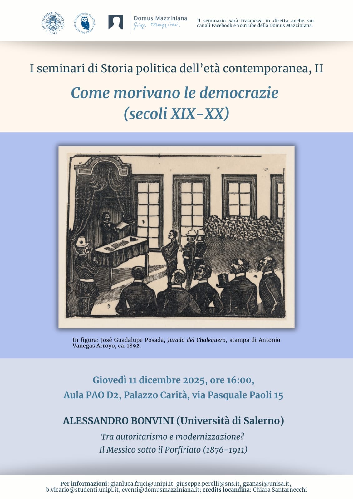 Intervento di Alessandro Bonvini (Università di Salerno) all’interno del ciclo “I seminari di Storia politica dell’età contemporanea e di Storia dell’Europa orientale. Come morivano le democrazie (secoli XIX-XX).