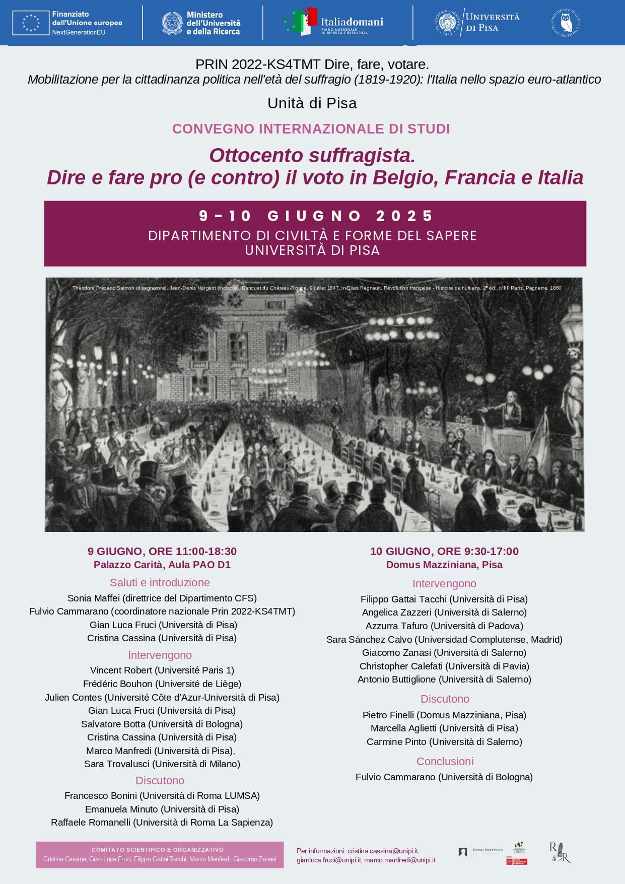 Convegno internazionale di studi dell’Unità di Pisa del PRIN 2022-KS4TMT Dire, fare, votare. Mobilitazione per la cittadinanza politica nell’età del suffragio (1819-1920): l’Italia nello spazio euro-atlantico