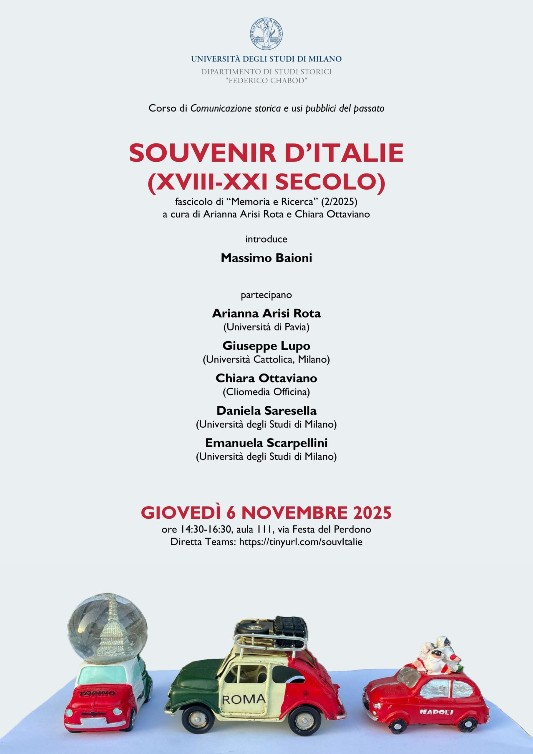 Souvenir d’Italie: presentazione del numero monografico di Memoria e Ricerca n.2/25 a cura di Arianna Arisi Rota e Chiara Ottaviano