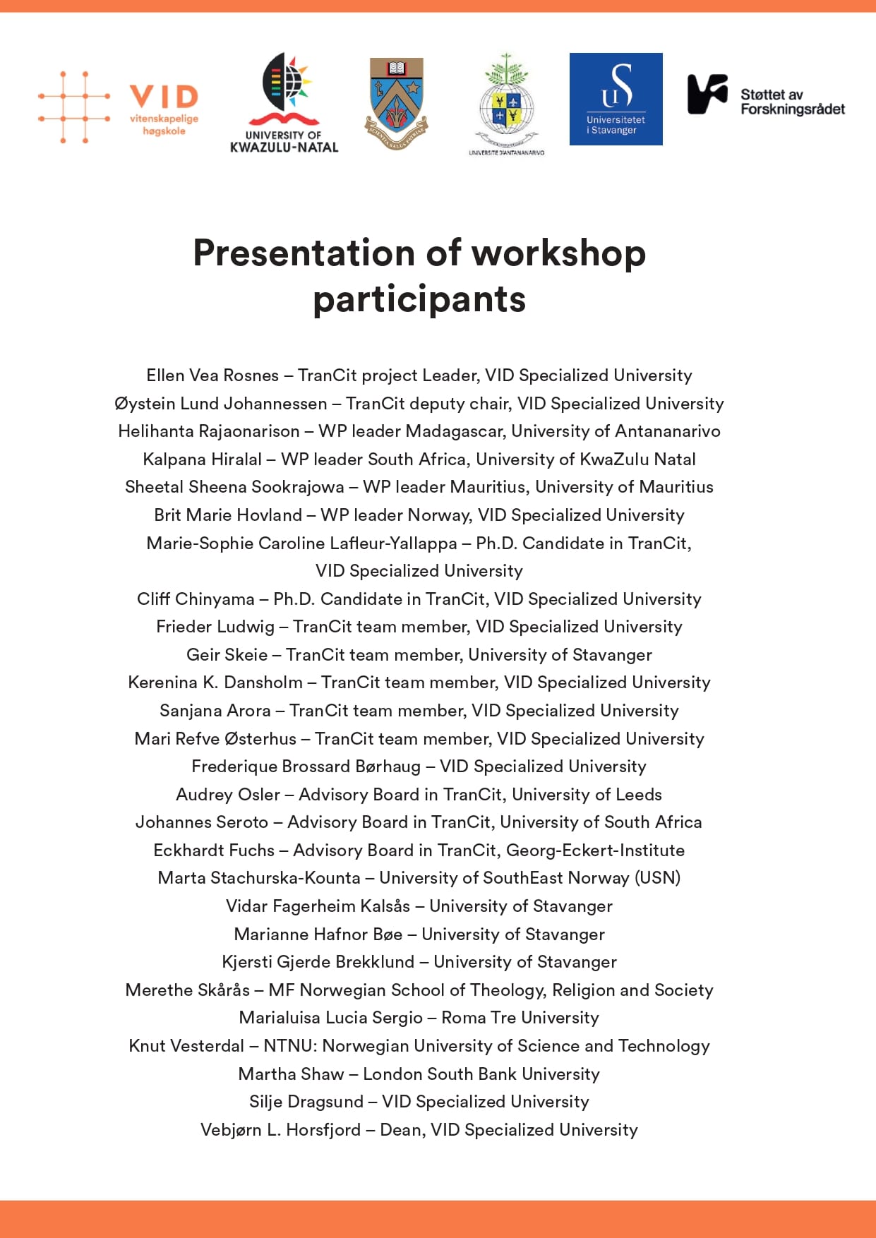 WP presentations of TranCit findings from Norway, Madagascar, Mauritius, and South Africa